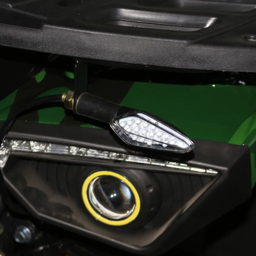 Модель выглядит круто, воинственно, моментально привлекает внимание других участников движения. Вместительное сиденье, удобная рулевая часть, возможность отслеживания скоростных показателей, степени зарядки батареи и других параметров увеличивает степень комфорта, исключает непредвиденные ситуации в пути. При мощности электродвигателя в 1500 Вт модель развивает скорость до 40 км/час. При пониженной передаче техника может становиться на дыбы. Большие легко сцепляемые с поверхностями колеса способны преодолевать препятствия. Наличие большой светодиодной фары допускает эксплуатацию тс в любое время суток и непогоду. Для оформления заказа предлагаем сделать телефонный звонок менеджеру или оставить заявку на нашем официальном сайте.