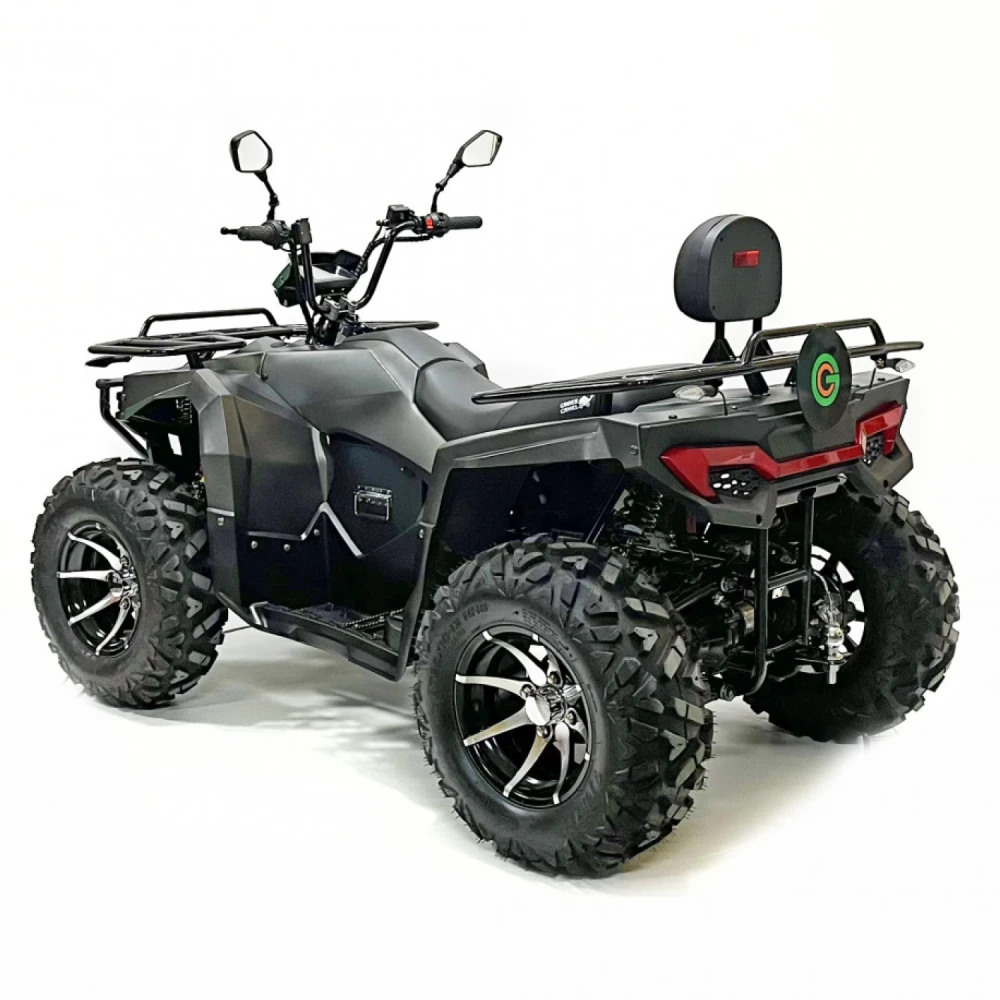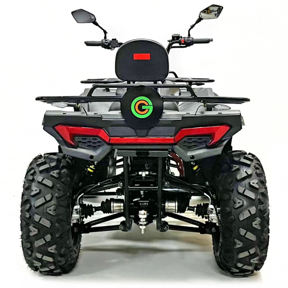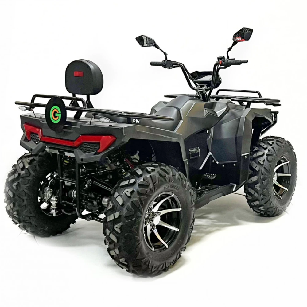 Аккумуляторная система квадроцикла заслуживает отдельного внимания: литиевый аккумулятор NMC с напряжением 72V и ёмкостью 120 Ah позволяет проезжать до 90 км на одном заряде, а ресурс в 700 циклов гарантирует долгий срок службы устройства. Зарядное устройство на 20A обеспечивает полную зарядку всего за 6 часов, что делает эксплуатацию квадроцикла ещё более удобной и эффективной.