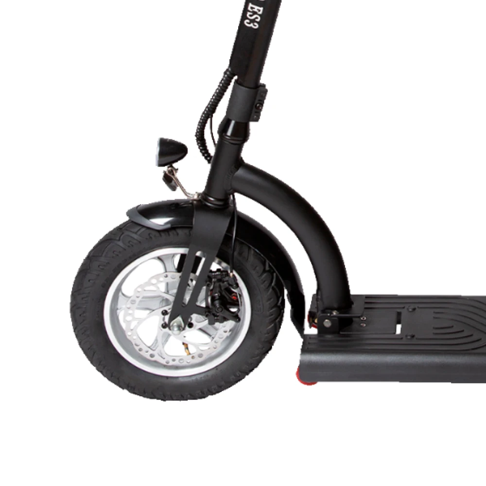 Мощность электросамоката составляет 500 Вт. Плавность хода обеспечена амортизаторами, роль которых выполняют накаченные колеса размером 12 дюймов. Модель предназначена для любителей активного отдыха, способна преодолевать расстояние на одной подзарядке до 35 км пути. Максимальная скорость техники – 35 км/час.