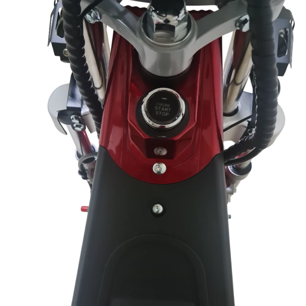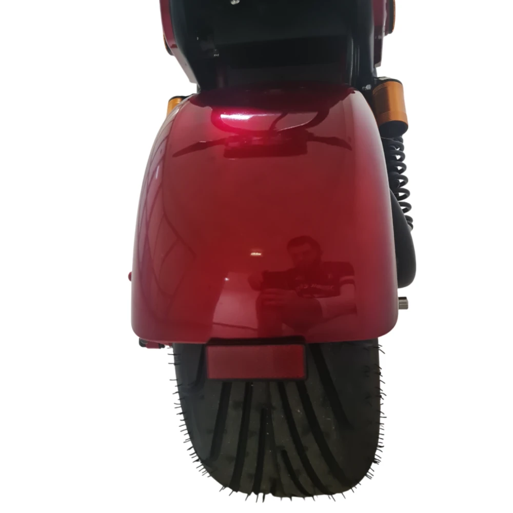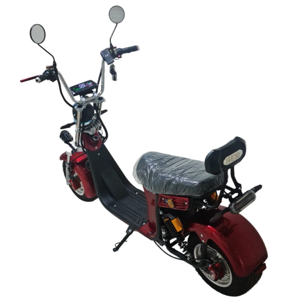 Электроскутер Citycoco GT E30 в красном цвете — это универсальное средство передвижения. С мощностью 3000W и задним приводом, он обеспечивает отличную динамику и маневренность на городских улицах. Благодаря двухколесной конструкции и надувным колесам диаметром 18 дюймов, скутер уверенно держится на дороге, что делает его идеальным для поездок по различным покрытиям.Съемный аккумулятор с напряжением 60V позволяет преодолевать расстояние до 50 км на одном заряде, что делает его идеальным вариантом для ежедневных поездок. Время зарядки составляет всего 5 часов, что обеспечивает быструю готовность к новым приключениям. Кроме того, в конструкции предусмотрено дополнительное место под аккумулятор, что увеличивает возможности автономной работы.Скутер весит 75 кг и может выдерживать максимальную нагрузку до 200 кг, что делает его подходящим для различных пользователей. Дисковые гидравлические тормоза обеспечивают надежную остановку, а большое мягкое сиденье и амортизаторы гарантируют комфорт даже при длительных поездках.Дополнительно, Citycoco GT E30 оснащен бортовым компьютером, зеркалами, звуковым сигналом, фарой и поворотниками, что повышает безопасность и удобство. Большая дека под ноги и прочная конструкция делают поездки еще более приятными.Электроскутер Citycoco GT E30 — это идеальное сочетание стиля, мощности и комфорта для тех, кто ценит удобство и скорость в городской среде.