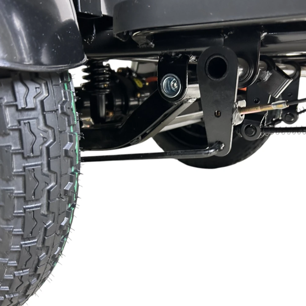 Простая и ремонтопригодная система: задний привод, барабанные тормоза, стандартный мотор и батарея.