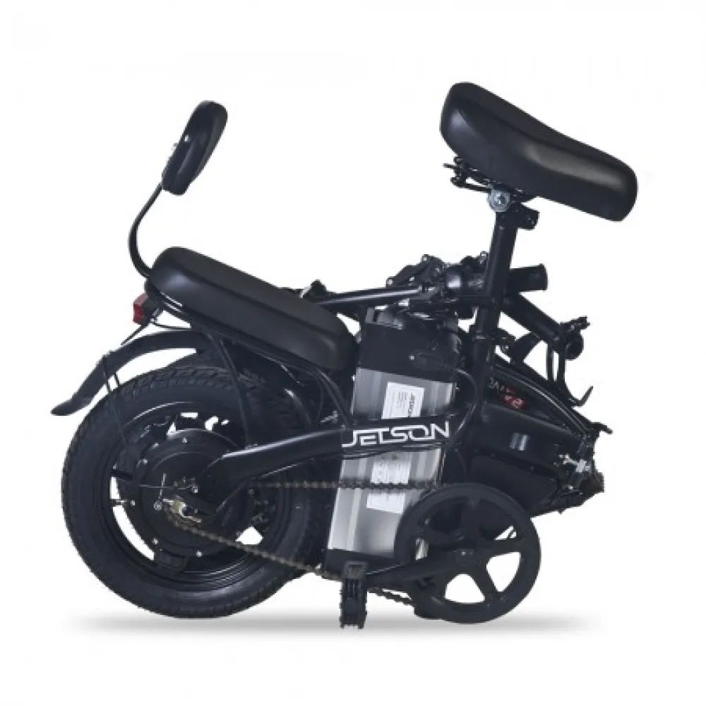 Электровелосипед Jetson V2-M 350W (48V/12Ah) черный – техника с заниженной конструкцией рамы и дополнительным седлом востребована семейными парами для ежедневного использования. Покупка электровелосипеда решит проблему доставки ребенка в садик или школу минуя общественный автотранспорт. Купить современный велогибрид грузоподъемностью не менее 100 кг предлагает наш интернет-магазин.